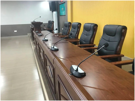 根据用户的使用需求,同时保证会议的稳定性,迪士普为会场主席位部署了多只手拉手连接的会议发言单元。设备外观简洁大气,内置指向性拾音器,能更好地拾取发言者声音;有线会议发言单元供电稳定,无需充电续航,可满足各类重要会议长时间稳定运行。