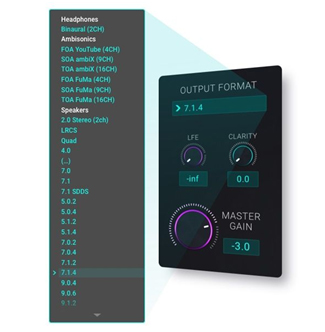 dearVR PRO 2 的输出部分可选择双声道、高保真立体声和多声道扬声器格式