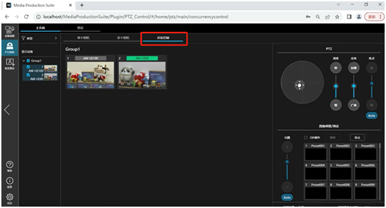 6、还可选择“并发控制”,即可通过一个控制按钮,同时控制多台设备的推拉移动等操作。在实际操作中,该功能的优势是可同时一键呼出不同摄像机的预置位,操作更高效快捷。