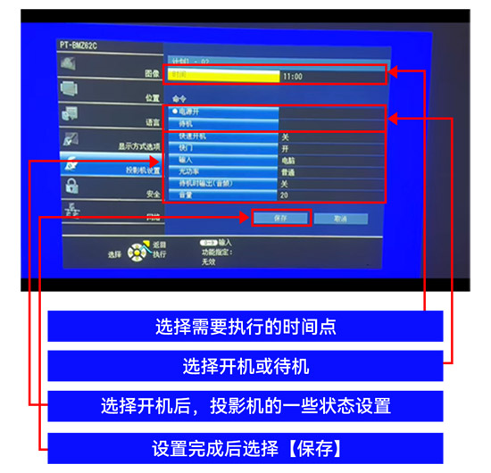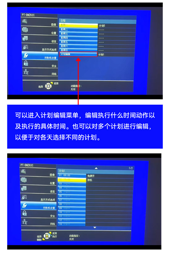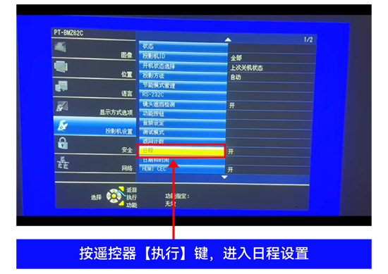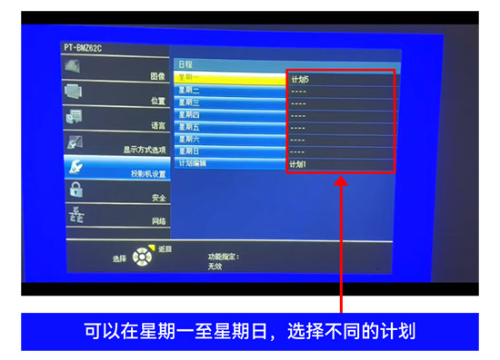 下面,我们就以松下投影机PT-BMZ62C机型为例,来看一看如何设置松下投影机的日程功能。