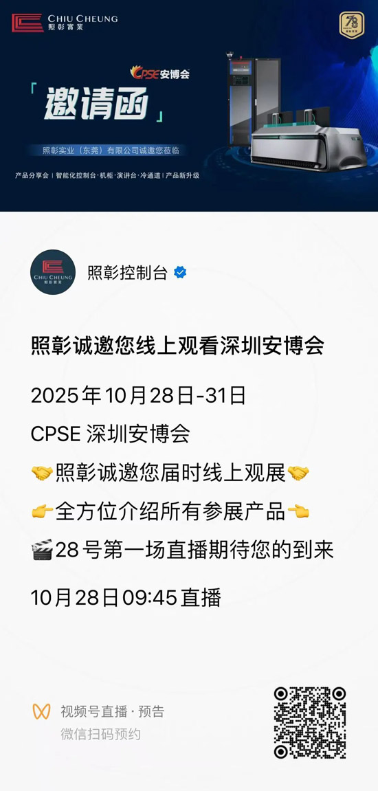 2025 第二十届中国国际社会公共安全博览会将于2025年10月28至31日在深圳会展中心(福田)盛大举办。届时,照彰将全面展示应用于AI时代,各垂直行业、多元化场景的控制台、演讲台/讲台、冷通道、一体化机柜等产品及集成解决方案,与您共探盛宴!
