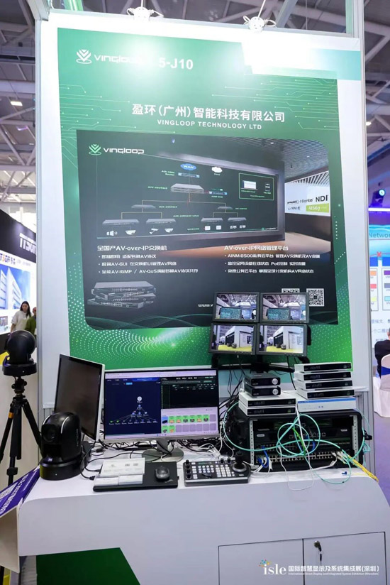 而VINGLOOP作为国产的AV-over-IP交换机,是整个系统背后的无名英雄,默默支撑着各种协议的运行。无论是Dante、NDI、还是SDVoE,VINGLOOP交换机都能够做到零配置即插即用。让我们跟随镜头去找寻会场中的VINGLOOP吧,一起见证AV-over-IP交换机的「硬件制造国产化」、「技术标准国际化」与「市场部局全球化」。